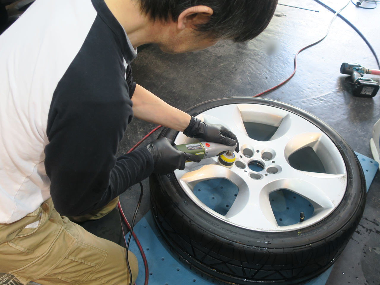 プロならではのケミカル&機材にて出来る限り汚れを落とし、ホイール専用のコーティングを施します。洗車時の汚れの落ち易さを是非体験下さい!
